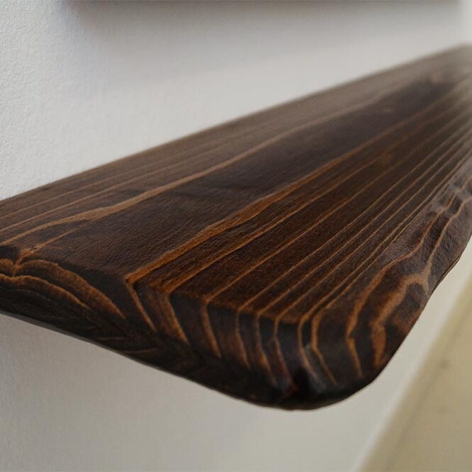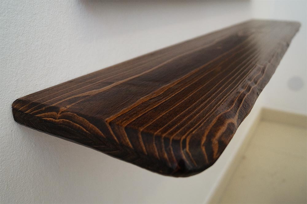 Jedes Brett ist ein handgefertigtes Unikat. Die Oberflächen der Regale sind mit einer Holzlasur auf Leinölbasis geölt. Die Endbeschichtung hat durch das Finish Öl einen sehr hohen Harzanteil.
